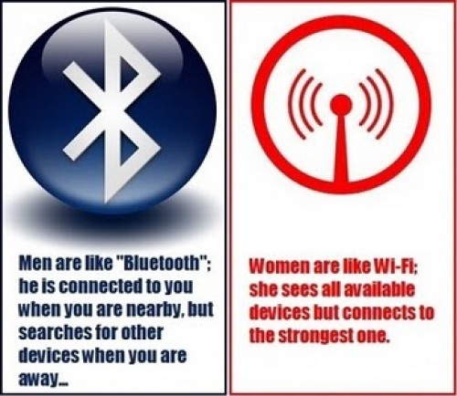 Οι άντρες λοιπόν, είναι σαν το bluetooth. Συνδέονται μαζί σου όταν είσαι κοντά, αλλά πάντα ψάχνουν για άλλες «συσκευές» όταν έχεις απομακρυνθεί.